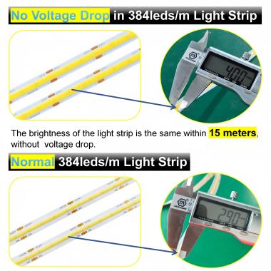 Мысалы, шам жолағының кіріс кернеуі 12 вольтты құрайды делік 12 вольт, егер шам сызығының бөлшектері арқылы ағындар болса, кернеу электр қуатынан шамамен 10 вольтқа дейін түсуі мүмкін. Бұл кернеудің төмендеуі жарық жолағының электрмен жабдықтаудан бір ұшында айтарлықтай күңгірт болып қалады.