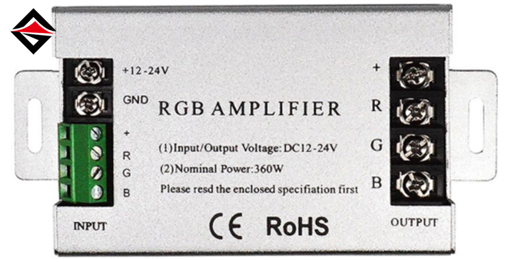 Жоғары қуатты жарықдиодты жолақтар үшін, күшейткіш төмен вольтты сигналды жолақты басқару үшін жеткілікті қуатқа арттыра алады.