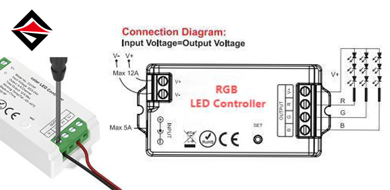ЖШД РГБ-нің оң және теріс полюстерін контроллердің оң және теріс тіректеріне қосыңыз.